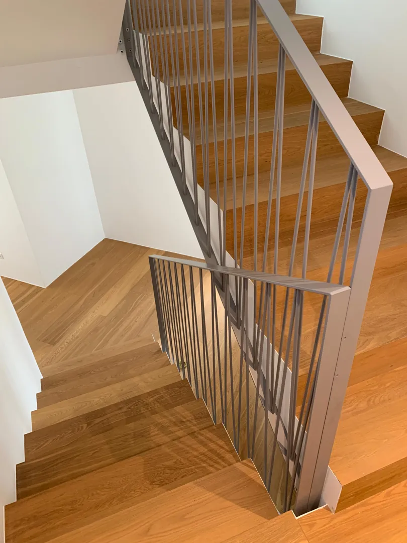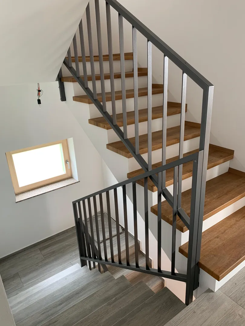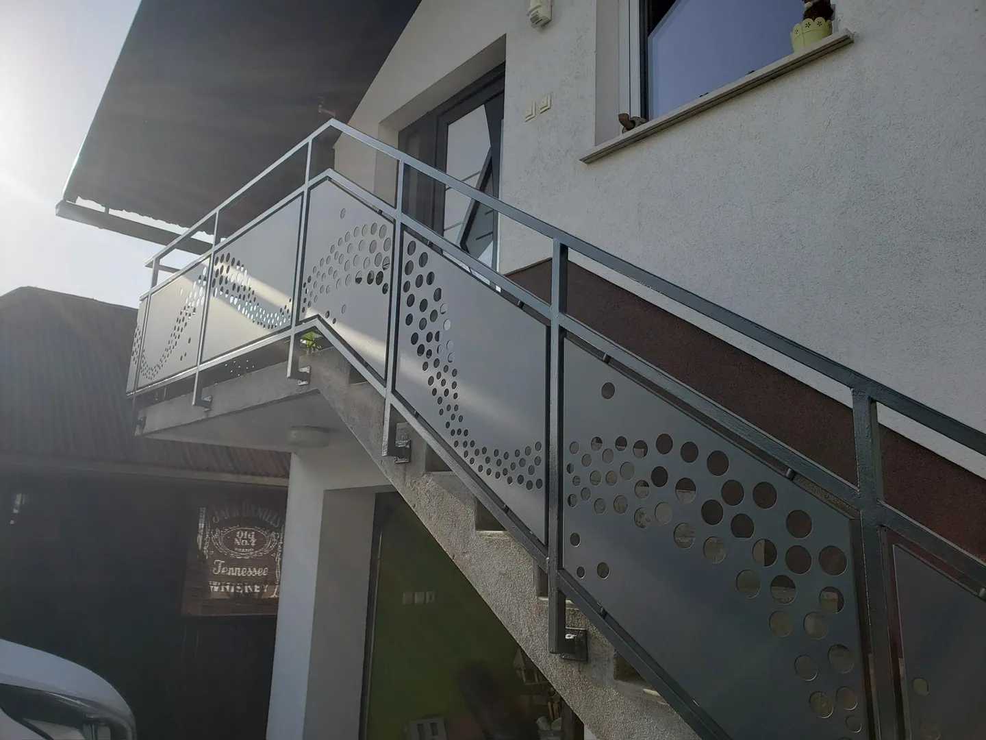 Imam dva balkona in eno zunanje stopnišče. Tanko železno ali alu ograjo, pocinkano in prašno barvano. Antracit barve.