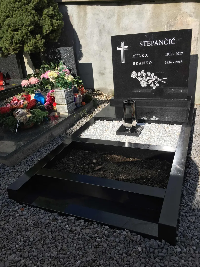 Pozdravljeni, enojni grob s spomenikom klasika + vaza iz istega materiala - granit oz nek neobčutljiv material. in svečnik pred grobom po celotni dolžini, ravno tako 30 cm praznega prostora za zasaditev vse ostalo plošča. Še dodatna mala plošča za napisana prednika, ki sta že tam pokopana. Vstavitev žarne niše 4/1. Lokacija star Žale. Prosim za samostojno postavko odstranitve obstoječega spomenika. Hvala, lp