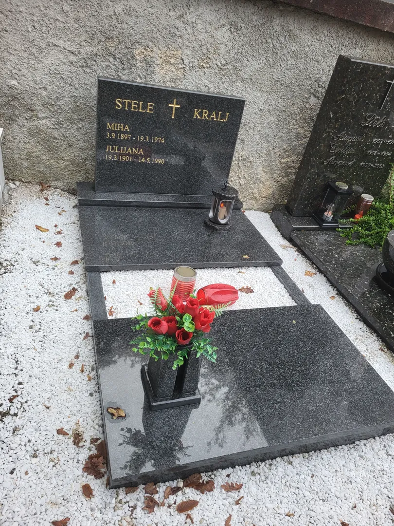 Zdravo, Grob se nahaja na Žalah v Ljubljani. Na nagrobniku je treba dopisati novo ime: Nuša Nagrobnik je star 20 let in je potreben obnove. Predvsem je potrebno popraviti priimek, ki je . Če bi šli v izdelavo novega nagrobnika, bi ob imenih navedli tudi letnice rojstva. Hvala in lp