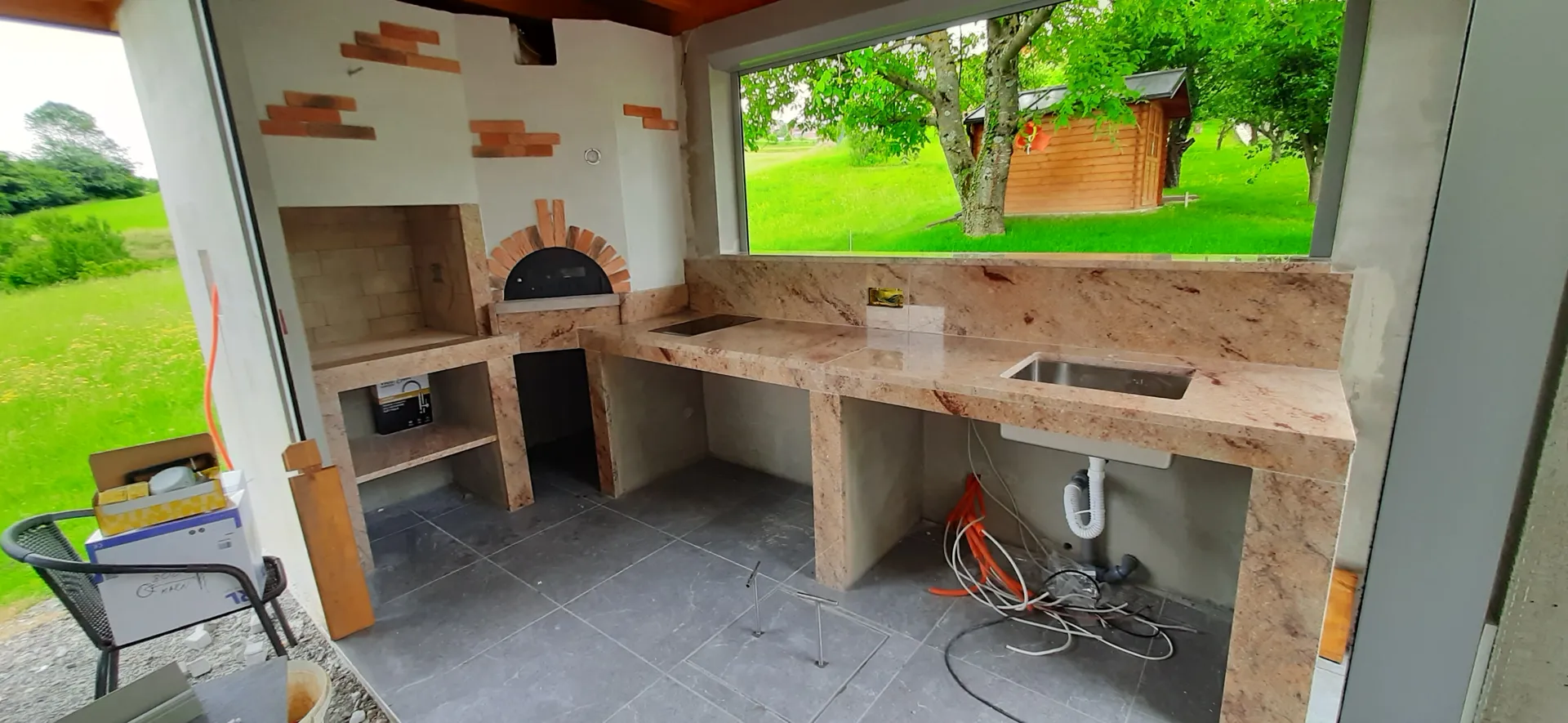 Pozdravljeni, granitni pult z izrezom in montažo. 3x cm pulta (v vsakem en izrez za korito) 2x cm (v vsakem izrez za malo steklokeramično ploščo (2 rinki) in izrez za korito) - čim svetlejši. Vse na približno isti lokaciji - isti naslov, med kuhinjami je cca 5-20m razmika. Gre za opremo letnih kuhinj in notranjih kuhinj za mobilne hiške. Izdelava do marca . Hvala, lp