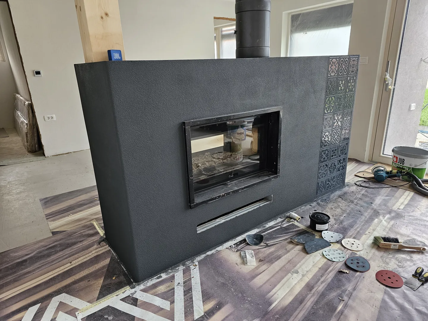 Lepo pozdravljeni! Potrebno bi bilo obleči toplozračni kamin - kotna varianta in izdelati par odprtin za izstop toplega zraka. Hvala, LP.