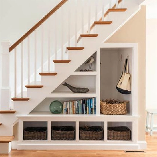 Pod stopnicami je ogromno neizkoriščenega prostora. Vgradite omaro za čevlje, pospravite oddeje ali preprosto obesite zimske plašče.
