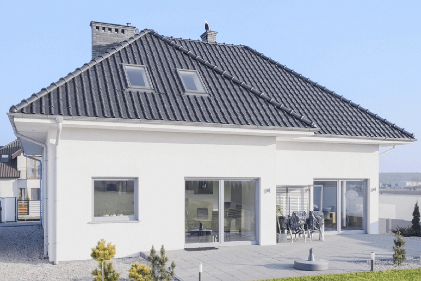 Svetla fasada na hiši s temno streho je brezčasna klasika, s katero ne morete zgrešiti.