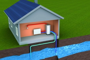 Toplotna črpalka zemlja/voda za vir energije uporablja toploto zemlje, v kateri se zbire ogromna količina energije. Zahteva izkop kanala, v katerega se položi cevni kolektor. Cevi so lahko položene vertikalno, horizontalno ali spiralno.