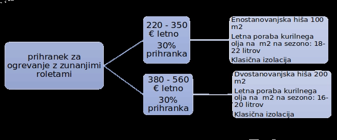 Zunanja senčila, predvsem rolete in žaluzije, bistveno pripomorejo k zmanjšanju stroškov za: