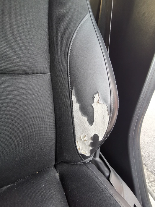 - Redna uporaba in trenje: Vsakodnevno vstopanje in izstopanje iz vozila povzroča trenje med telesom, oblačili in sedežem, kar lahko vodi do razpok ali lukenj.