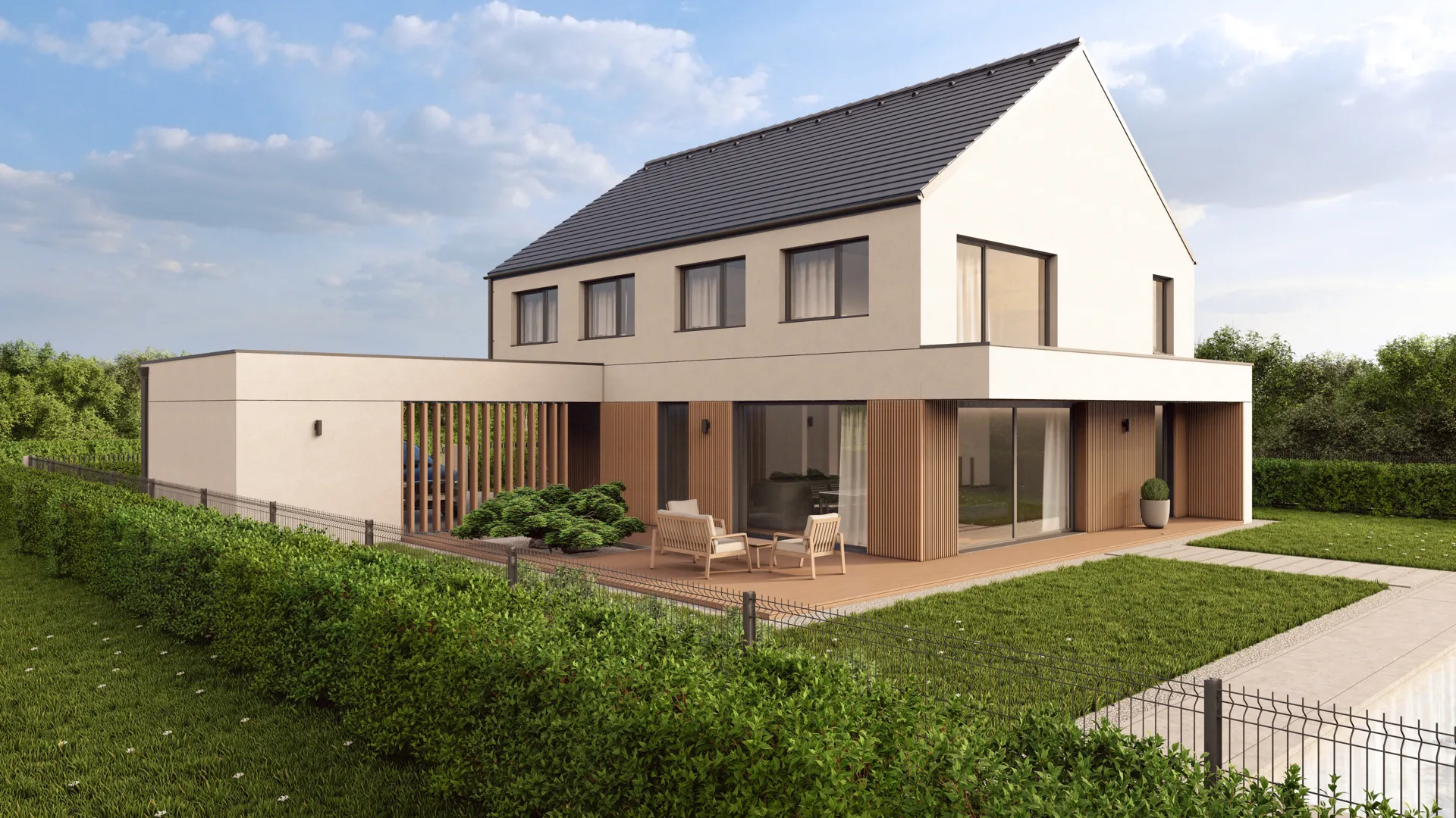 Pozdravljeni, prosim za ponudbo.Hisa v dveh nadstropjih v obliki crke L, z ravno streho. Hvala, lp