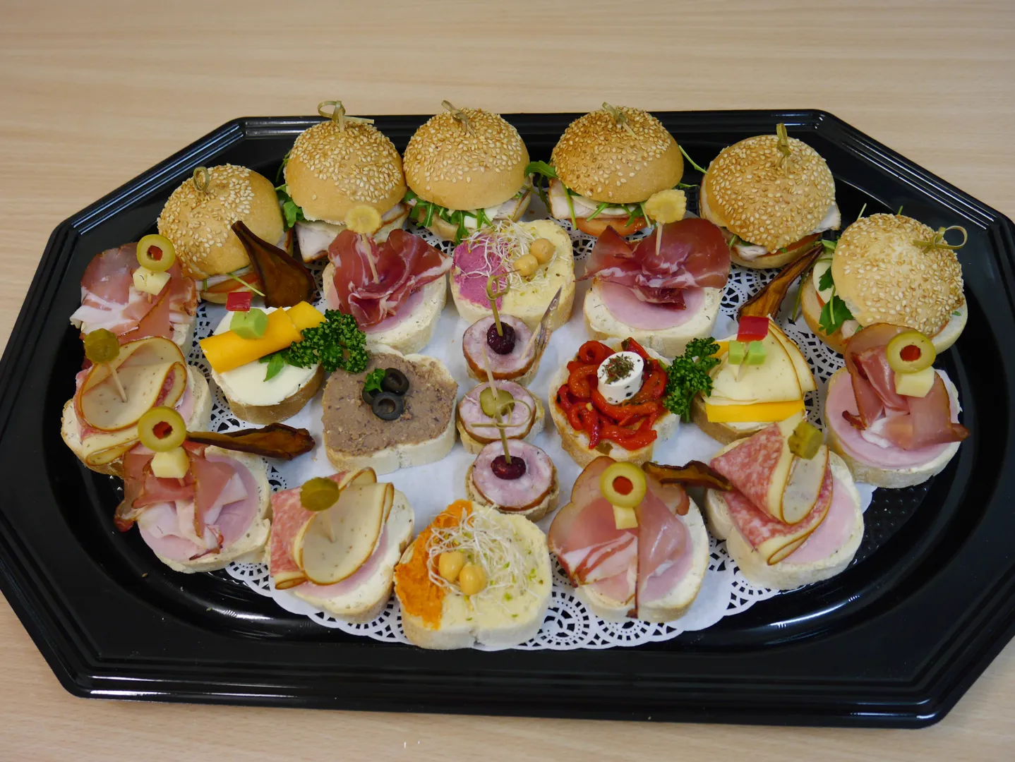 Dogodek oz. Poslovilna zabava bo s sodelavci, v pisarni. Ponudba hrana naj bo zato taka, sa jo lahko pojemo stoje, s kroznikom v roki. Hvala za ponudbo jedi in okviren cenik.