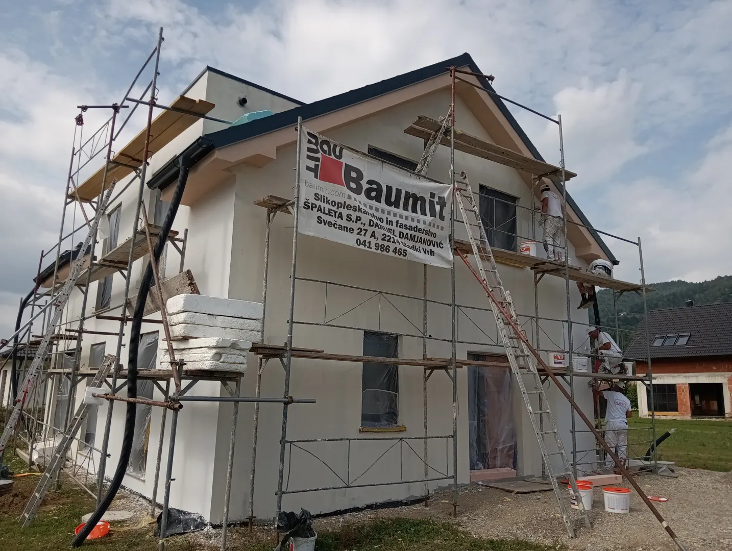 Kako poteka izdelava fasade na nedokončani opečni hiši?