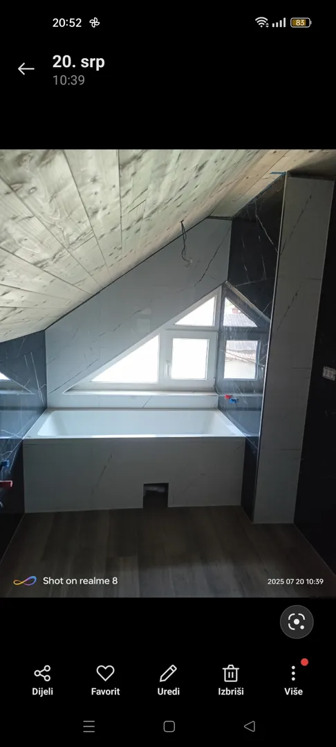 Lepo pozdravljeni! Potrebujem polaganje ploščic v naslednjih prostorih: 3,41m2+višina 2m, vse štiri stene-2 kopalnici. 1 predprostor z garderobo-8,5m2, ob strani zgolj zaključek 3 soba-toplotna tehnika-5,16m2, selektivno določene stene pokrite s ploščicami, višina 2m 1 kopalnica-11m2, stene pa so do stropa (mansarda), ena stran 1,4m višine, druga stran 2m višine. Hvala, LP.