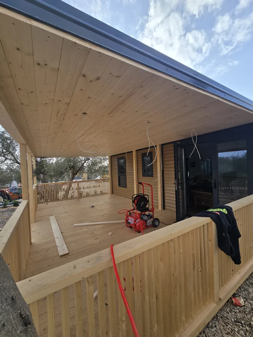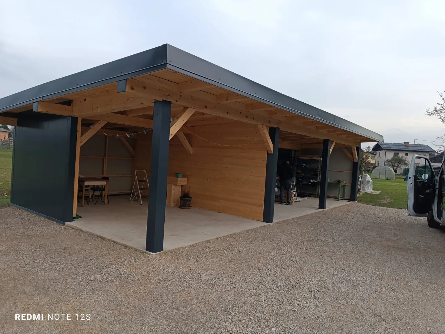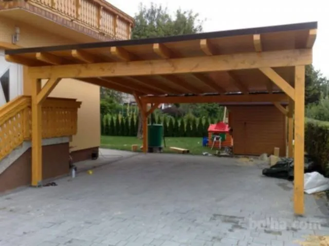 Pozdravljeni . Izdelava dve štirikapni lesenih nadstreškov: Prvi cca. x cm je z eno stranico naslonjen na zid druga (daljša) stranica je na dveh lesenih stebrih skupaj s krovskimi in kleparskimi deli (če je možno) Drugi je cca x cm velik samostojen objekt .S tremi stranicami bo postavljen na cca. cm visok kamnit zid skupaj s krovskimi in kleparskimi deli (če je možno) SKUPAJ S KVALITETNEJŠEM LESOM (in kritino). Hvala, LP