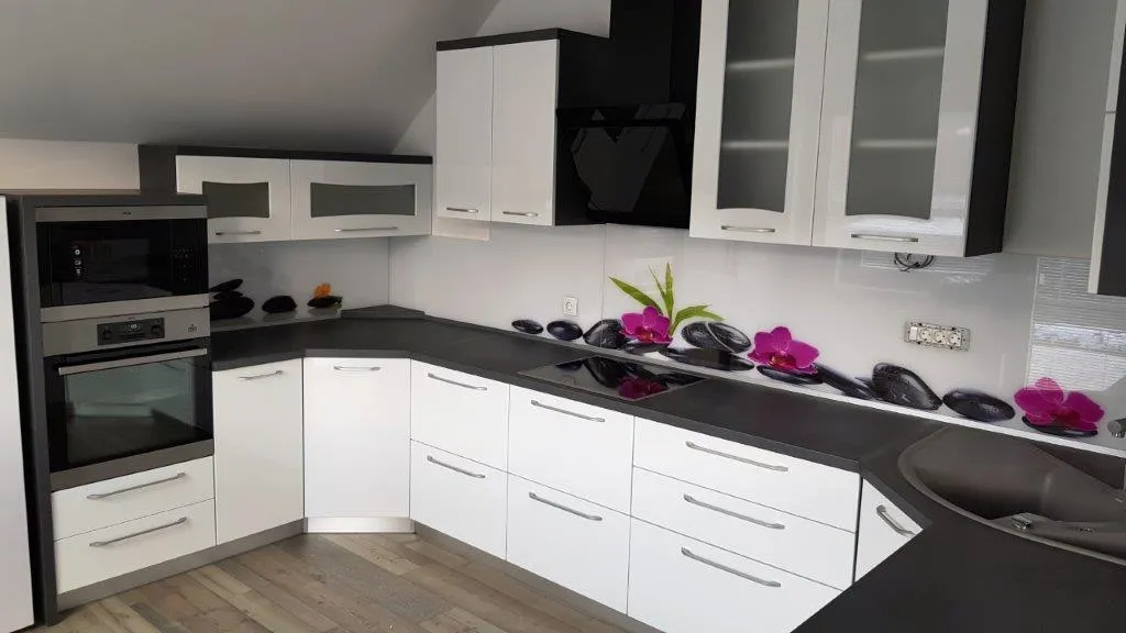 Prilagam skico elementov - zanima me le izris in elementi kuhinje in ne dnevne sobe. Prostor ima eno steno postrani (sem na skici označila kje je nižji strop), gre za mansardno kuhinjo, zato jo bom zagotovo naročila po meri. Razpored elementov: razširjeni delovni pult naj ima z ene strani dva predala, iz druge strani, ki gleda na dnevno sobo pa naj bo le odprta polica (kot na prilogi 2). Kuhinja ima kotni lijak z odcejalnikom. Na strani, ki gleda v dnevni prostor naj bo tukaj vsaj 30 cm visoka stenica, da voda ne šprica čez pult. Več na skici kuhinje. Hvala.