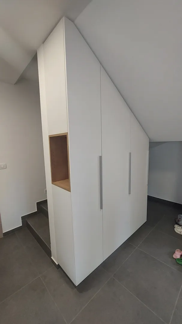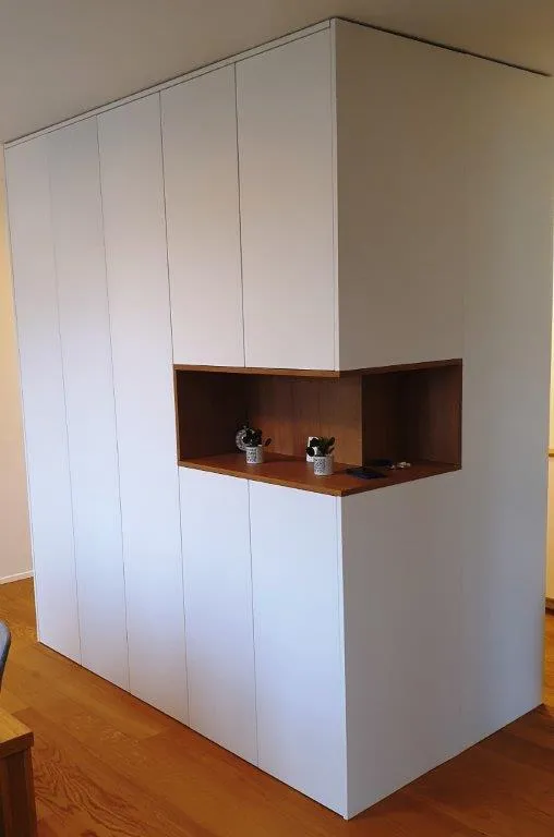 Pozdravljeni, Trenutno obnavljam stanovanje v Ljubljani-Črnuče in ker bom v prihodnje potreboval omaro v hodniku, želim tako omaro, ki bo funkcionalna in narejena po meri. V prilogi je narisana omara z merami. - Na desni stani omare, bi imel prostor za bunde/plašče. - Na sredini, bi imel prostor za čevlje, se pravi z veliko polic. - Na levi strani bi spodaj imel še eno majhno omaro za čevlje in prostor za sedet, da se lahko normalno obuješ, Nad tem bi pa imel še prostor za obiskovalce, da bodo lahko obesili svoje jakne. - Zgoraj, bi pa imel klasične omare brez polic. Dimenzije v priponki. Hvala. Lep pozdrav,