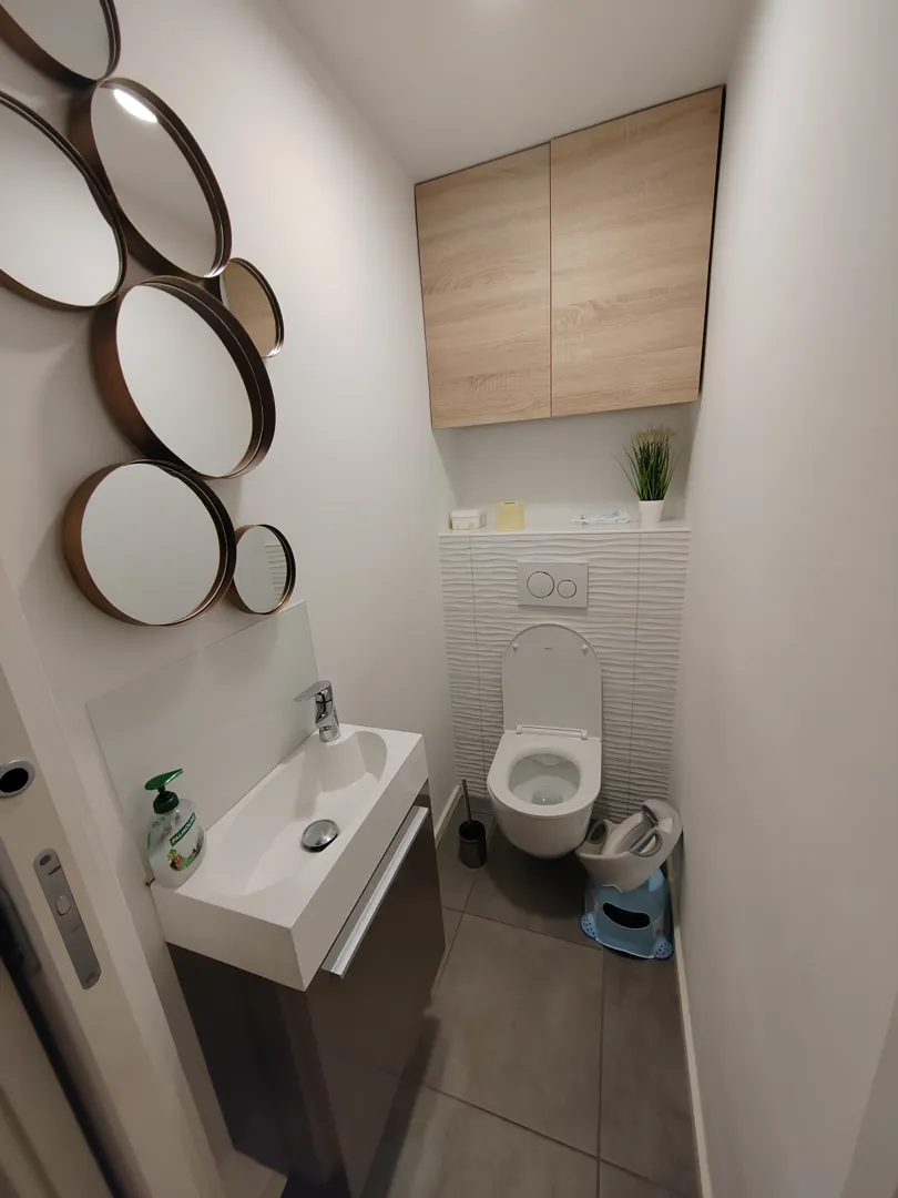+ coscenje oken v pritlicju; trije vecje povrsine, trije manjse povrsine. 2x manjsi kopalnici, 1x wc Kuhinja brez notranjega ciscenja omaric