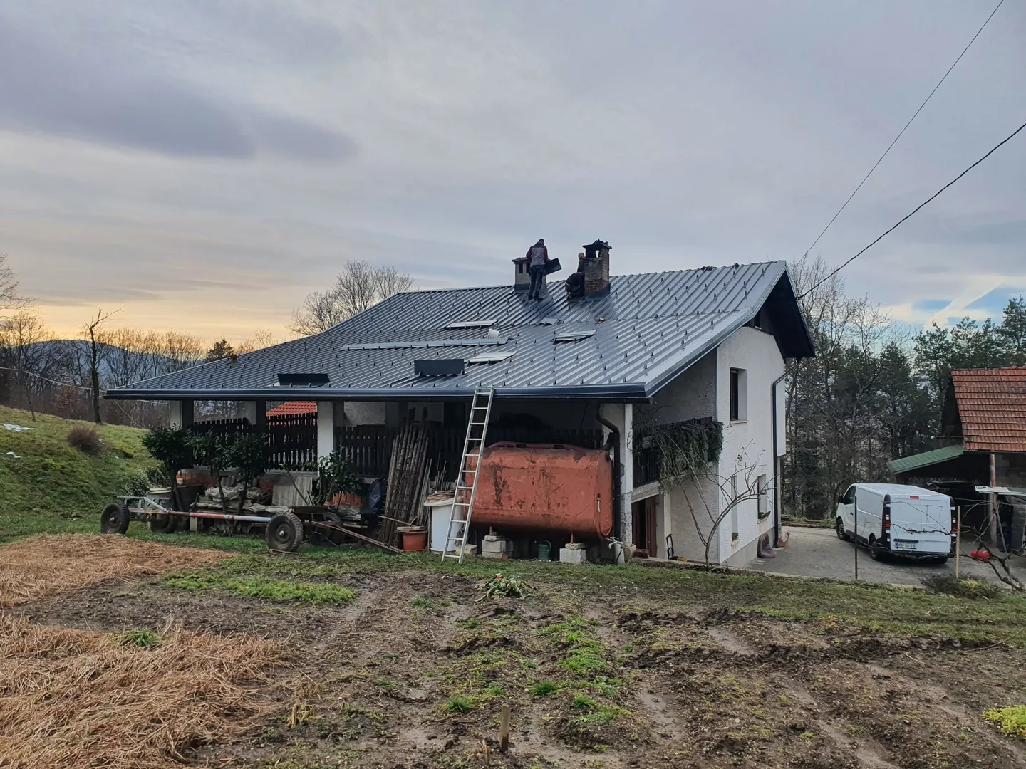 Pozdravljeni, naslednjo pomlad (maj ) bi menjali kritino na hiši. Nahajamo se na Dolgem mostu v Ljubljani - Čučkova ulica 17. Trenutno imamo opečnate strešnike, ki bi jih zamenjali za nove opečnate strešnike ali pločevino. Površina strehe je cca m2, v priponki se nahajajo načrti. Streha je stara cca. 40 let. Na podstrehi so trenutno spalnice, streha je minimalno izolirana. Od vas bi potrebovali: - menjavo kritine (prezračevana streha?),- dodali bi tri strešna okna,- menjava štirih obstoječih strešnih oken, - izdelava špalet okoli strešnih oken, - toplotna izolacija strehe. Kako je z odvozom starih strešnikov - tu lahko pomagam sam s prikolico. Razmišljamo tudi o montaži panelov za ogrevanje tople vode - ali nam lahko tudi tu nudite vaše storitve? Predlagam ogled v živo. -- LP,