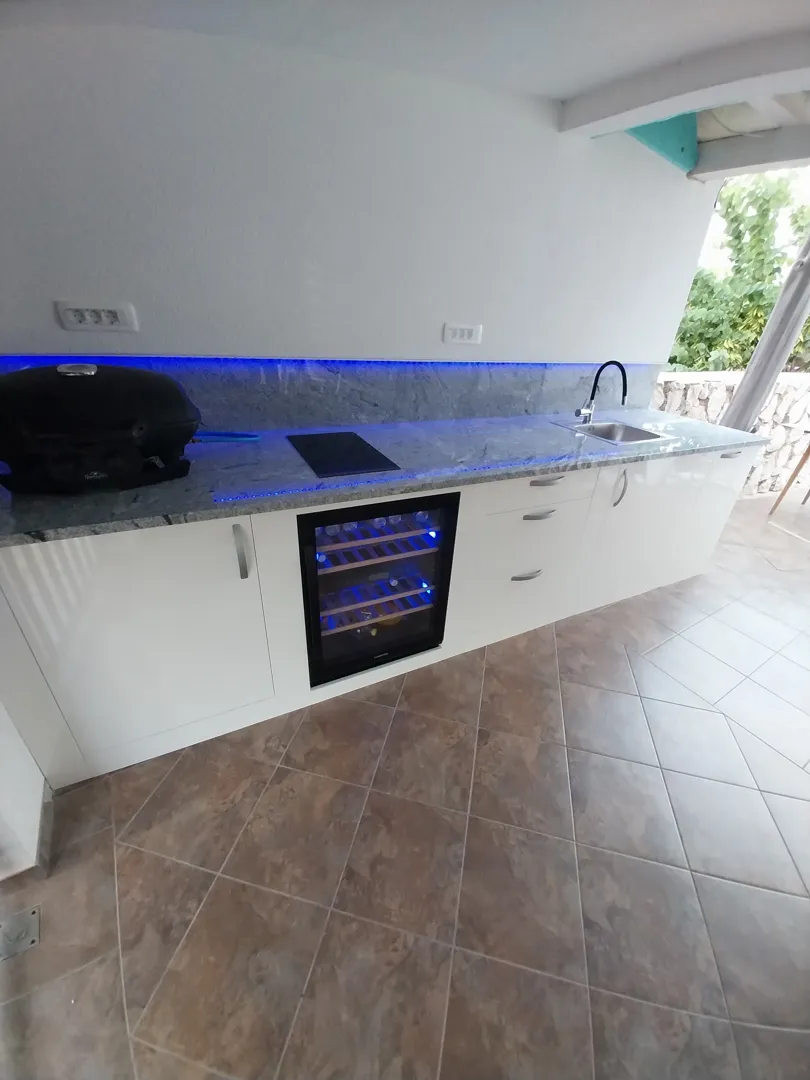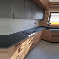 kuhinja v dolžini 2 metra z elementom za vgradno pečico in vgradnim štedilnikom - pečica in štedilnik sta ločena, samostojni element za pomivalno korito v dolžini 1 meter, potrebujem tudi zgornje elemente, razen za nad pomivalnim koritom, materijali po vašem priporočilu oz. po dogovoru; med spodnjimi elementi mora biti en element s predali - predalnik; v elementu za vgradni štedilnik mora biti prostor za plinsko jeklenko;