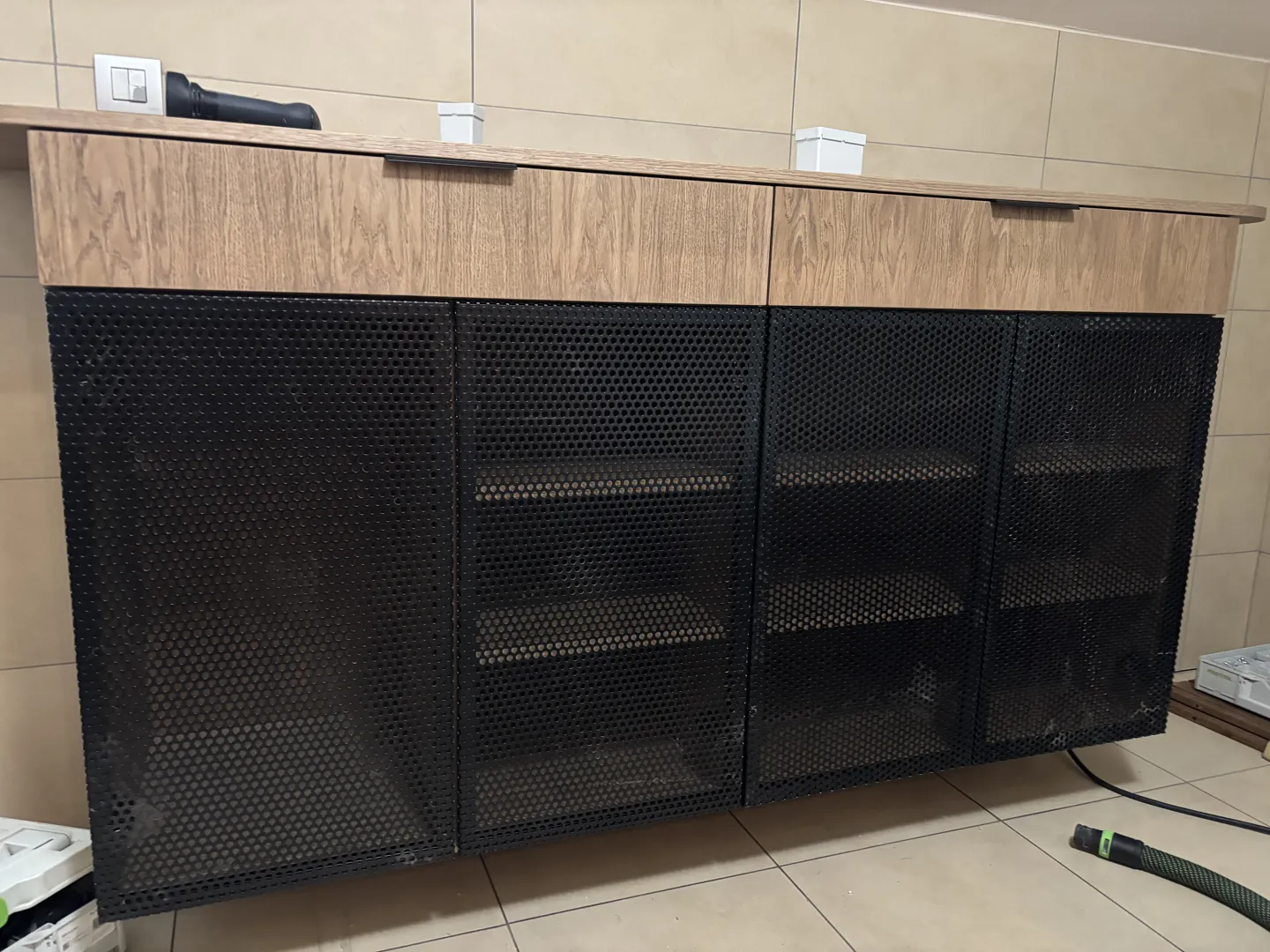 Za vikend potrebujem par elementov kuhinje med zidom in oknom. Mere spodnjih elementov je in zgornjih elementov 60. Spodnji elemeniti naj bi bili: 50 (omara višina 2m na lavi strani ob zidu) +60( štedilnik s pečico) +60( za pomivalno korito in spodaj omarica s policami) Omarica 50 cm mora biti visoka 2m, razdeljena na 3 dele. Spodaj sta 2 predala eden velik in eden za pribor, predali srednji del je za mali hladilnik in zgornji del polica. Pod pečico je predal. Les naj bo bele barve, pult pa v naravnem lesu. Trebija-Poljanska dolina