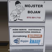 O nas: Naše podjetje ponuja /suhomontaža:ravne stene ,stropovi,predelne stene ,izdelava mansard,,nudimo tudi barvanje,beljenje,svetovanje in pomoč pri izbiri najboljših rešitev za Vaš dom,hisni servis manjših popravil, .Več letne izkušnje in profesionalna izvedba in dostopne cene.Mojster Bojan poskrbi,za prenovo vašega doma