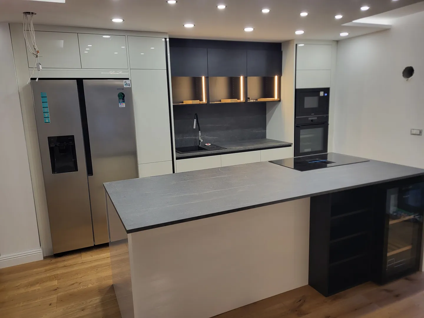 Pozdravljeni, potrebujem kuhinjo po meri. 2 m , višina elementov 2.30 cm ( VISOKA OMARA kjer je pečica in spodaj hladilnik, pomivalni stroj 45 cm) Hvala, lp