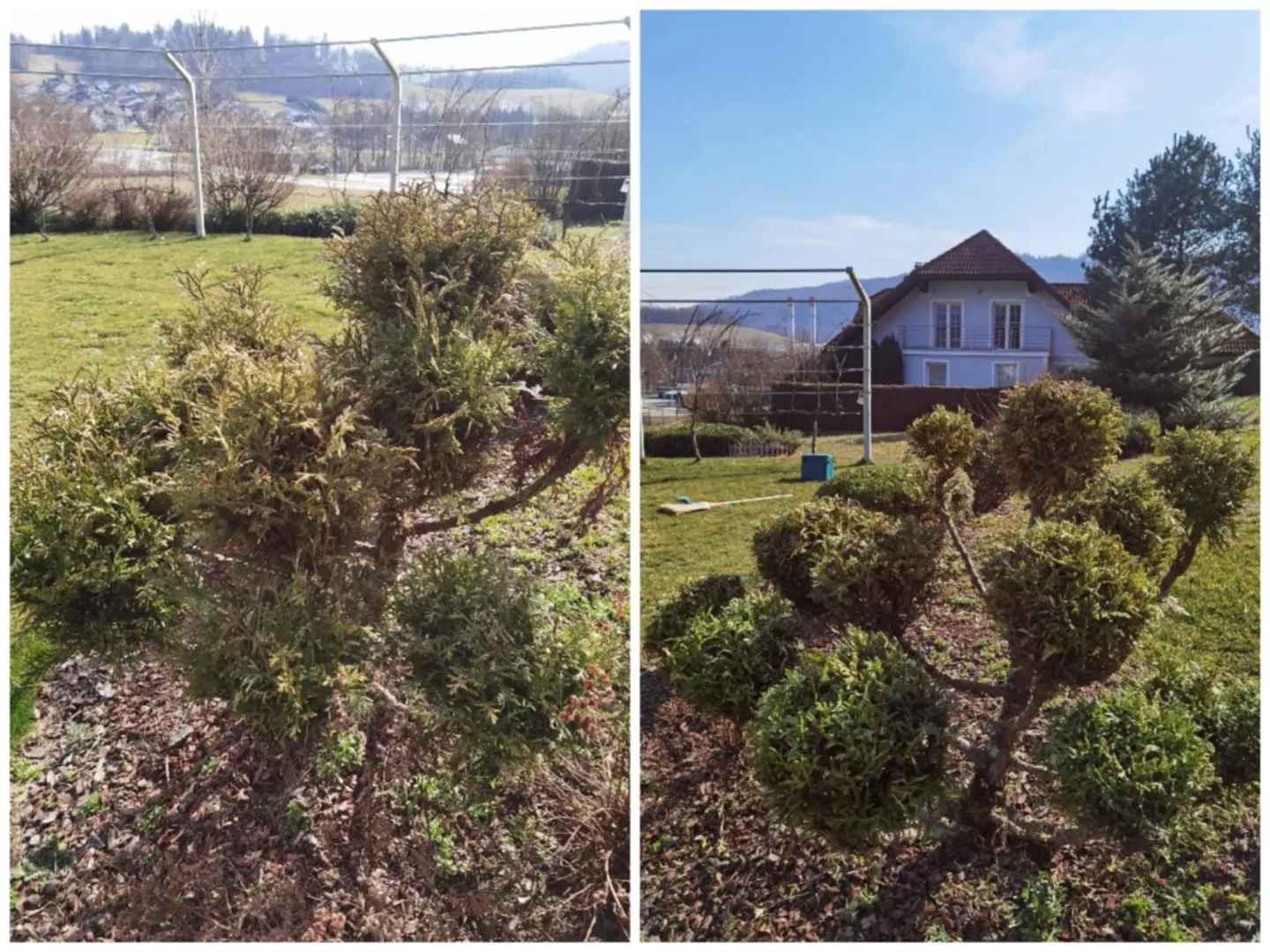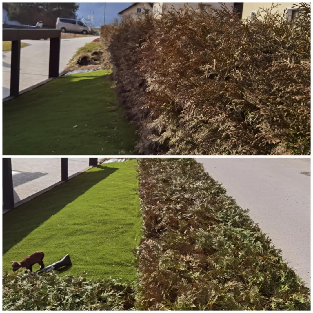 Imamo majhen vrt. Odstraniti je potrebno 1 smreko. Odstraniti je potrebno cca 7m žive meje češmin. Na odstranjenih mestih je odstraniti korenine in splanirati cca 10m2 terena. Rok izvedbe v februarju ali marec . Lp