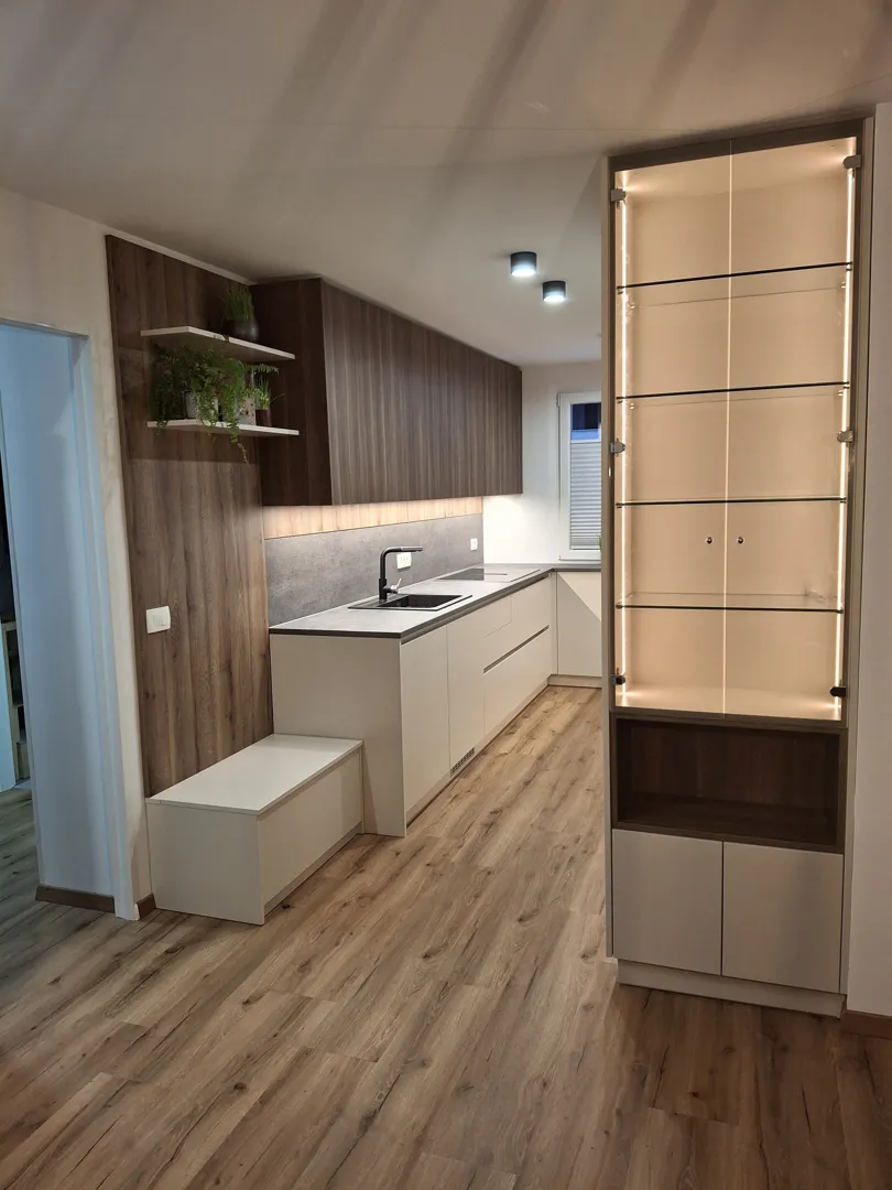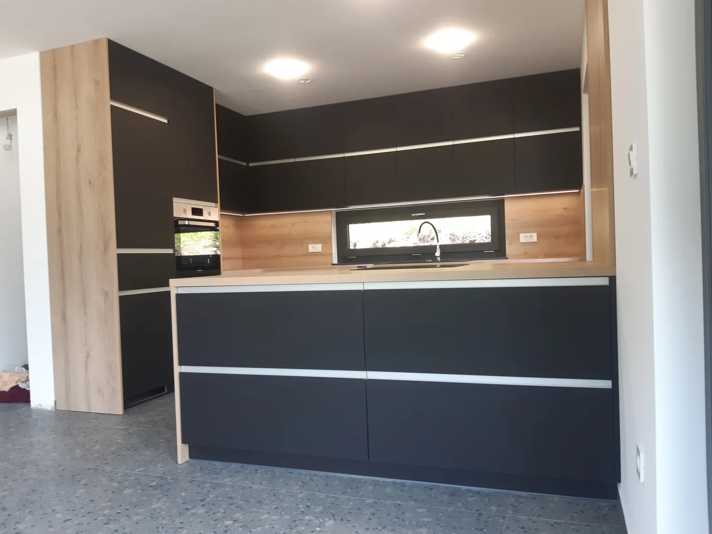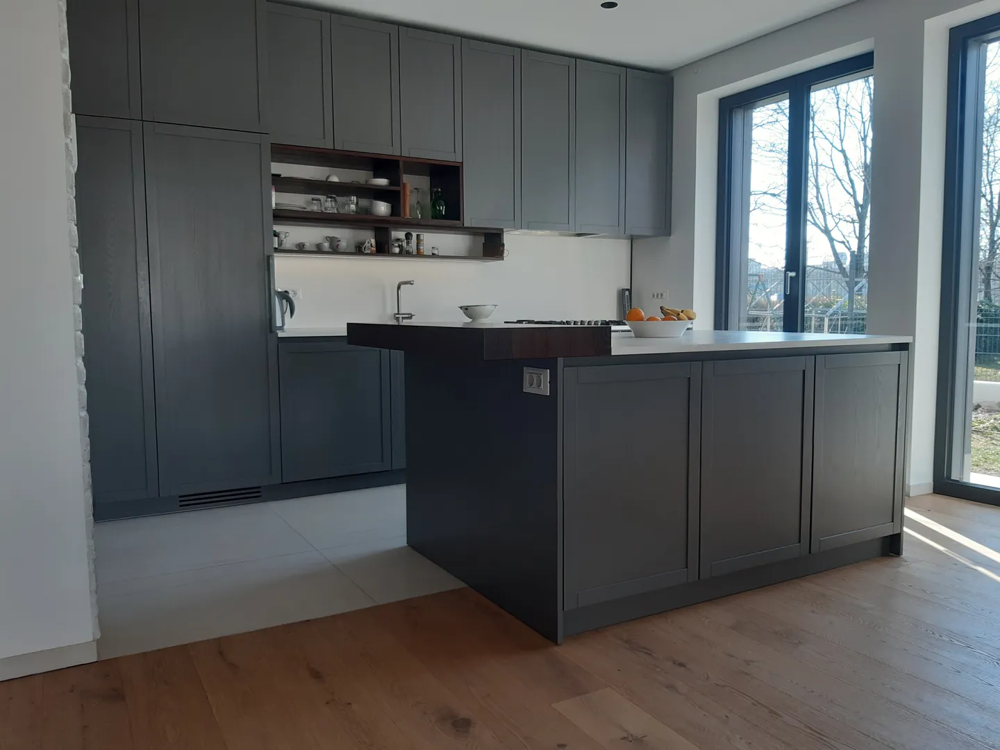 Pozdravljeni, potrebujem kuhinjo v sestavi: talni: Omarica za korito -80*60*80cm Omarica - 90*60*80cm (dvoje vrata) samostoječi štedilnik (že imamo) Omarica - izvlečna -20*60*80cm Delovni pult debeline 28-32mm na omaricah: 90*60*80 in na 20*60*80 delovni pult pri koritu - izrez stenski (viseči del): omarica - 40*40*60cm - fronta omarica - 40*40*60cm - fronta omarica - 45*40*60cm - steklo vrata omarica - 45*40*60cm - steklo vrata omarica za napo nad štedilnikom - 60*40*60cm odprti regal- 20*40*60cm Otok predalnik - 50*60*80cm predalnik - 50*60*80cm predalnik - 50*60*80cm Delovni pult debeline 28-32mm čez celotno površino Okovje in ročaji naj bodo klasični, pri predalih pa omogočeno počasno zapiranje. Brez visokega sijaja, mat finiš Barve kuhinje: viseči del: barva hrast sonoma talni del: temno siva (betonska ali kamnita siva barva) delovni pulti: barva hrast sonoma Lokacija: Trstenik, Golnik Prosim za ponudbo izdelave in montaže. Kuhinjo bi potrebovali v čimkrajšem času. Najlepša hvala in lp