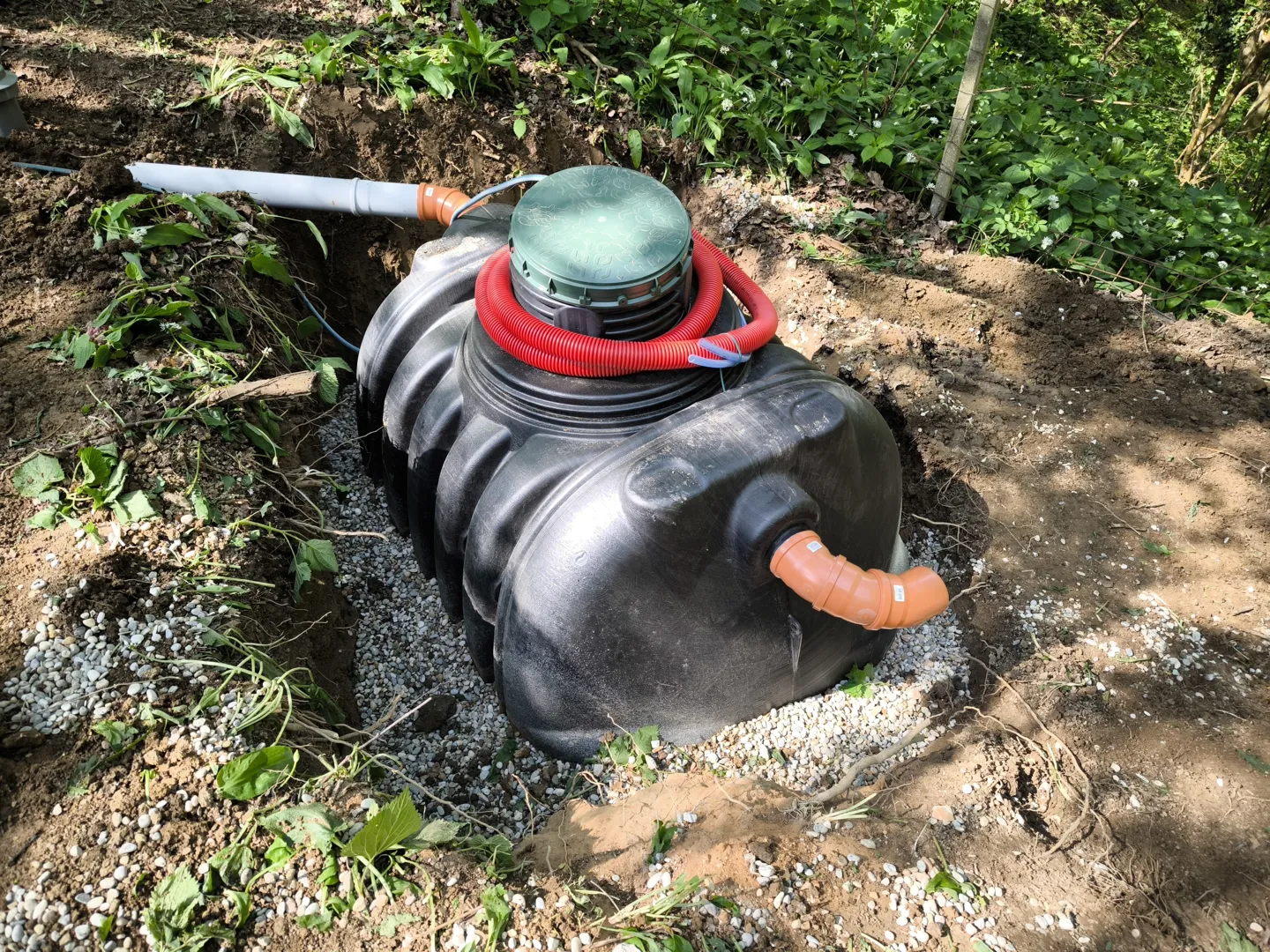 Pozdravljeni. Prosim za ponudbo. Izgradnja črpališča fekalnih vod pred obstoječo greznico na prostem pred hišo. Izgradnjo sekundarnega voda cevi do priključka na primarni vod, cca. 40 m(odcep za priklop se nahaja na naši parceli) .Višinska razlika med črpališčem in priključkom na primarni vod je cca. 1,2 m. Rdeča pika na skici označuje mesto črpališča, od koder naj bi vod potekal proti vzhodu in pred uvozom zavil levo proti severu do z rdečo »obkroženega« priključka. Izvedbo priključka moram realizirati v roku 3 mesecev, torej predvidoma nekje do novembra, saj izvedbo v decembru ne morem načrtovati. Komunalno podjetje Logatec v svojem pozivu za priključitev ni podalo nobenih smernic ali drugih pogojev za izdajo soglasja za priključitev na primarni vod. V kolikor ste zainteresirani za izvajanje vas prosim za ponudbeno ceno, predviden rok pristopa k izvedbi in predviden čas izvajanja del. Če želite še pred tem priti na ogled na lokacijo Grčarevec 37 vas za termin ogleda prosim, da pokličete na tel.številko -, Magda .