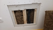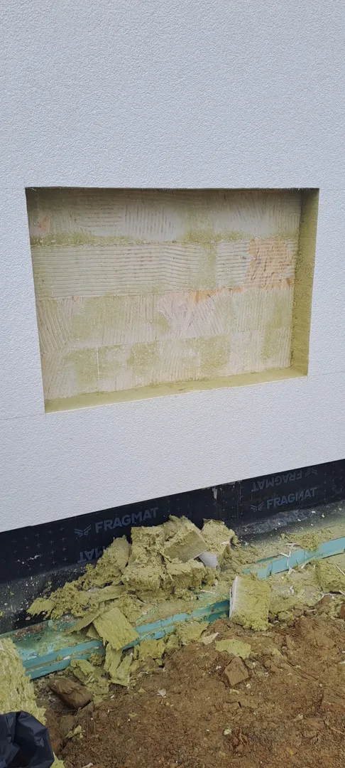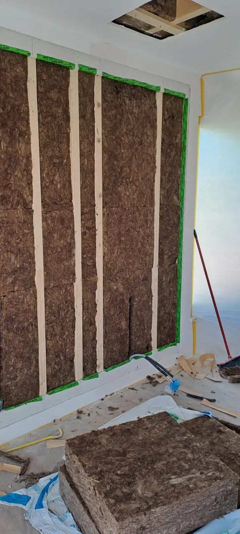 Odstranitev obstoječe stenske obloge in odvoz materiala: gre za lesno oblogo s stekleno volno pod lesom, obložena je ena celotna stena širine cm, kjer je dolžina lesenih desk enaka širini stene, in en manjši kot cca 2x pol metra. Dodatno bi potrebovala izravnavo manjšega kota nekdanjega dimnika (znotraj), ki je bil obmetan z betonom.