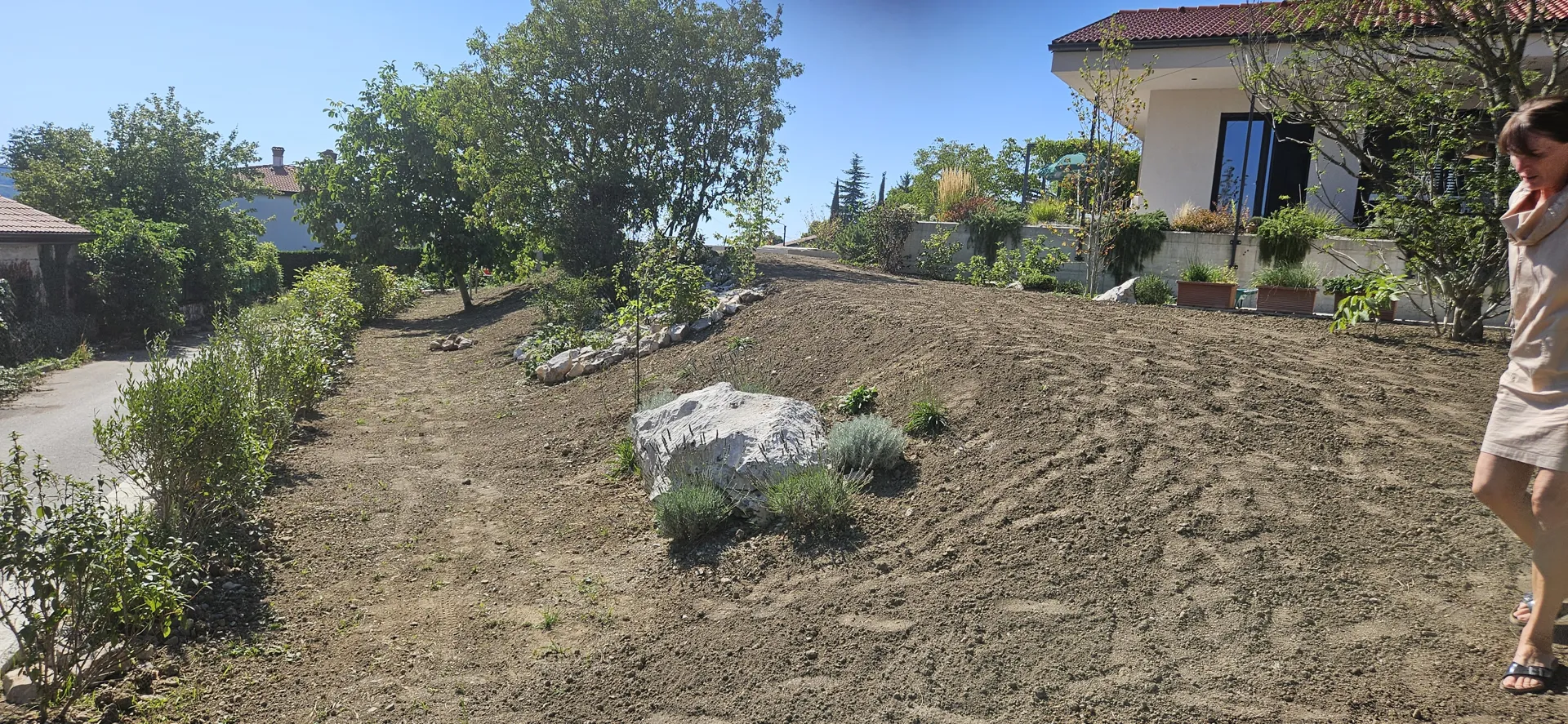 Potrebujemo izravnavo terena, teren že že zasajen s travo, vendar vmes veliko plevela in sušnih predelov, želimo imeti lepo zeleno trato, potrebujemo tudi zasaditev ob nabrežju, nekaj, kar bo raslo navzdol, višina škarpe je 3m, dolžine cca 70m...dela bi se lotili ob koncu poletja oz. September, 1.polovica oktobra. Predlagam vnaprejšnji ogled, super bi bilo, da ste mojstri iz okolice Ilirske Bistrice, saj bo lažje za izvedbo.